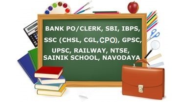 Bank (PO/CLERK, SBI, IBPS), SSC(CHSL, CGL, CPO), UPSC, RAILWAY, NTSE, SAINIK SCHOOL, NAVODAYA, etc..